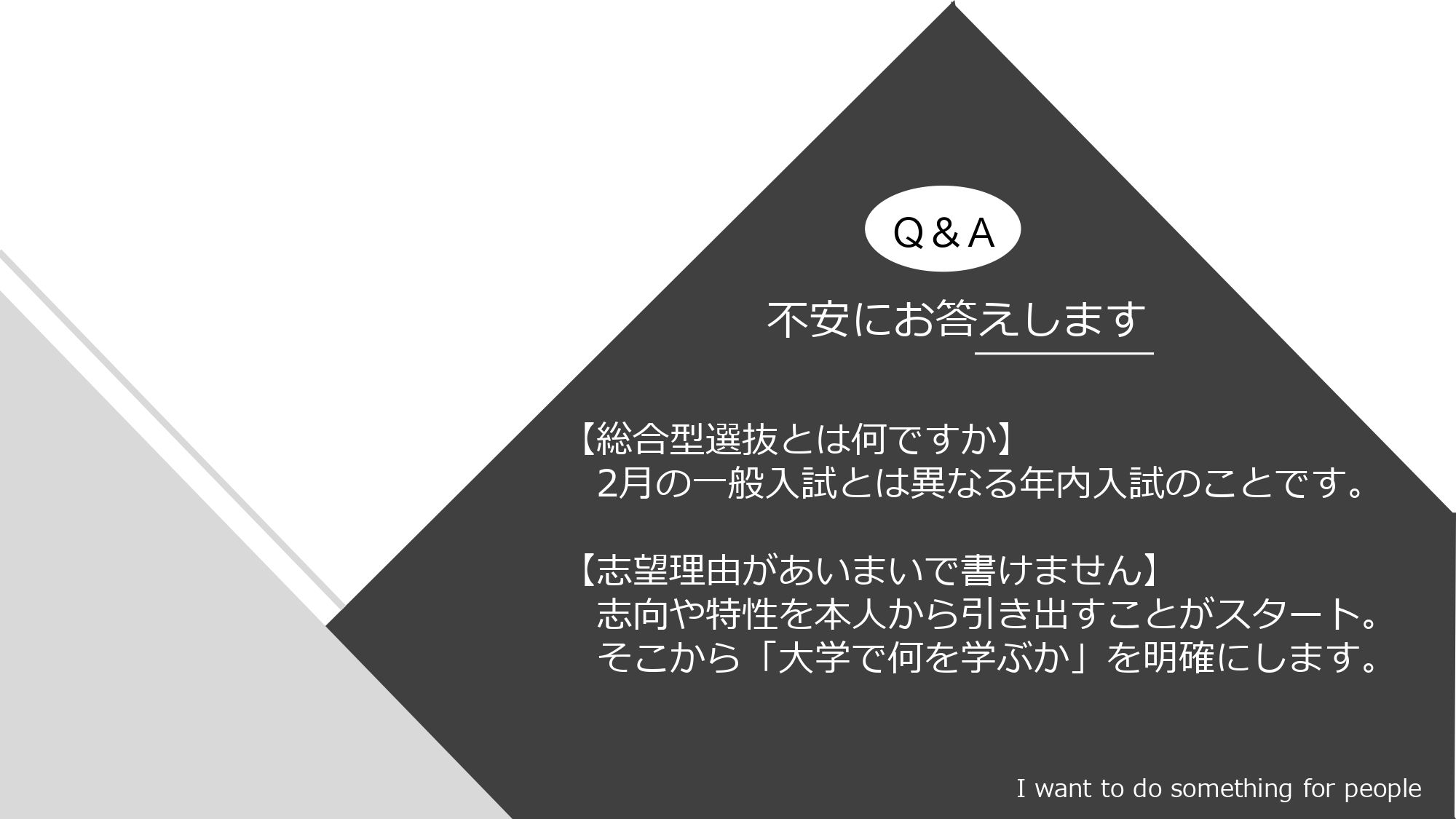 総合型選抜の現状や不安を伺い、方向性を一緒に整理します。