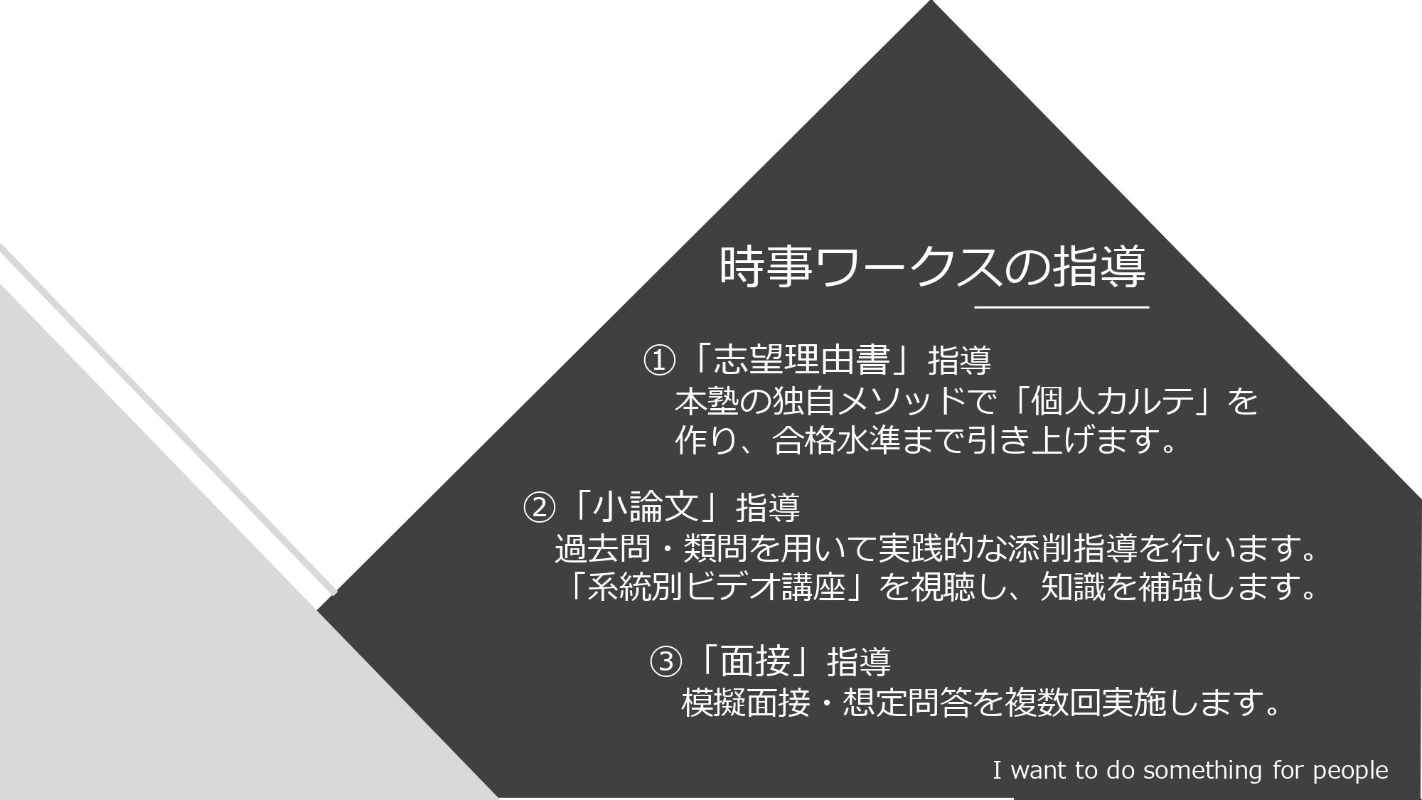 時事ワークスでは、プロ講師が監修した講義と小論文演習を提供します。